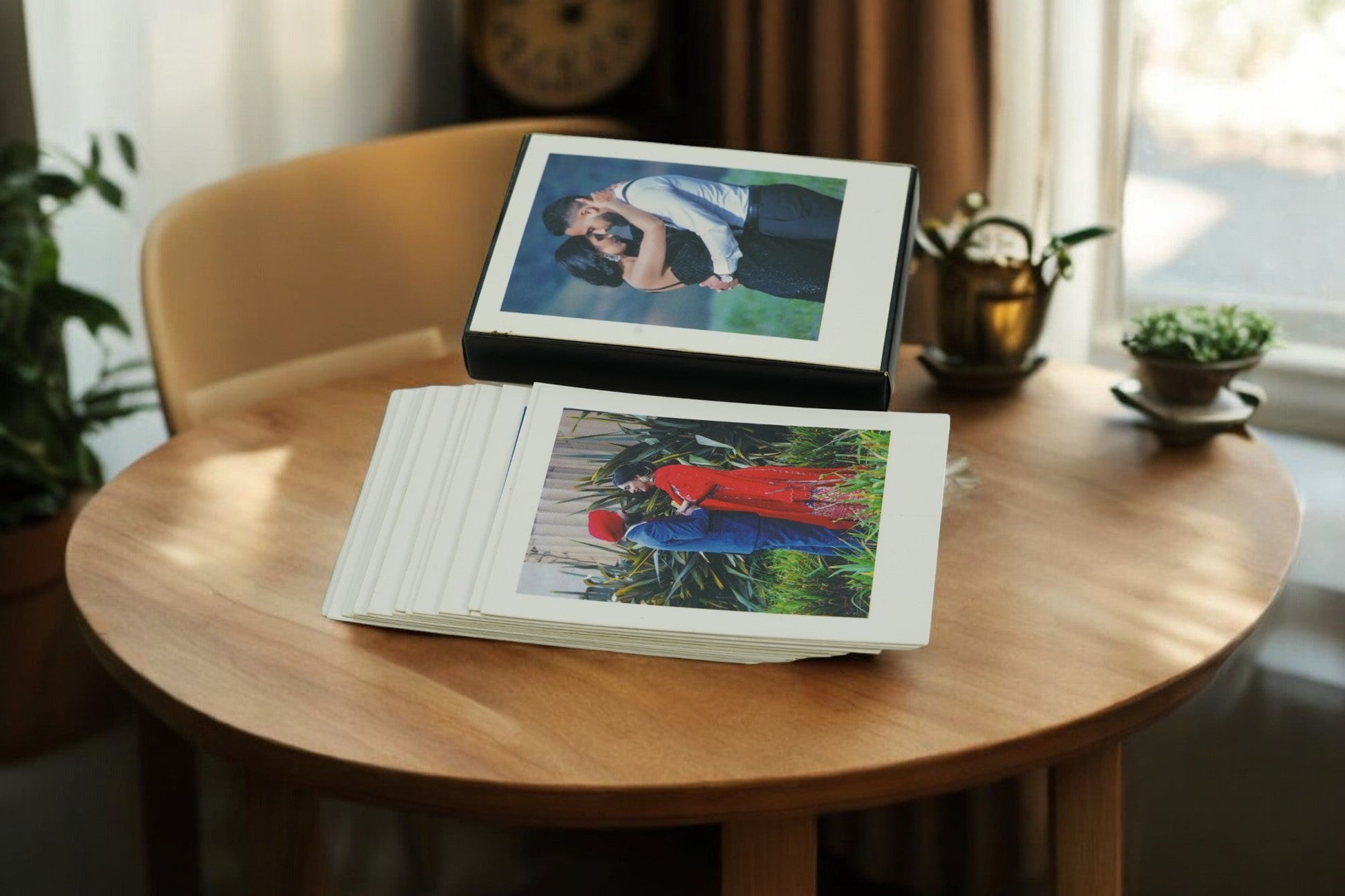 Printed on thick, premium-quality paper with a classic white border, each photo captures your moments with crisp detail and soft tones that echo the feel of old-school film.